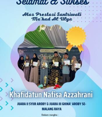 Dalam rangka memperingati Hari Santri Nasional (HSN) Tahun 2025, Ma’had Al Ulya Kota Batu mengirimkan delegasi terbaiknya untuk mengikuti Kegiatan Puncak Hari Santri yang diselenggarakan oleh Kementerian Agama Provinsi Jawa Timur. Kegiatan tersebut berlangsung selama dua hari, yaitu pada 24–25 Oktober 2025, berlokasi di halaman Kantor Wilayah Kementerian Agama Provinsi Jawa Timur, Jalan Raya Bandara…
